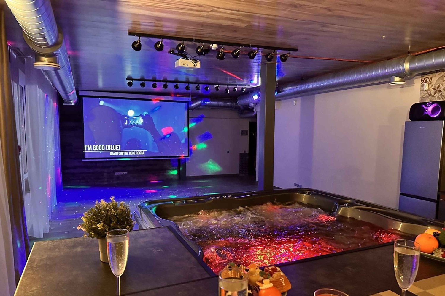 Für die Dauer deiner Miete gehört das Spa Cinema nur dir. Du kannst jeden Film, jedes Musikvideo oder jede Sportsendung ansehen. Das Einzigartige daran ist, dass du das alles vom sechssitzigen Spa-Pool aus sehen kannst. Youtube Premium, Netflix, Prime, Internet-TV mit über 600 Kanälen. Jede Buchungsoption. Date, Geburtstag, Familienurlaub, Junggesellinnenabschied und mehr. Du kannst bei uns Essen und Getränke bestellen oder deine eigenen mitbringen. Vor jeder Vermietung wird das Wasser im Spa-Pool komplett gewechselt. Lage: Zentrum von Riga. 1,5 km von der Altstadt von Riga entfernt.Includes