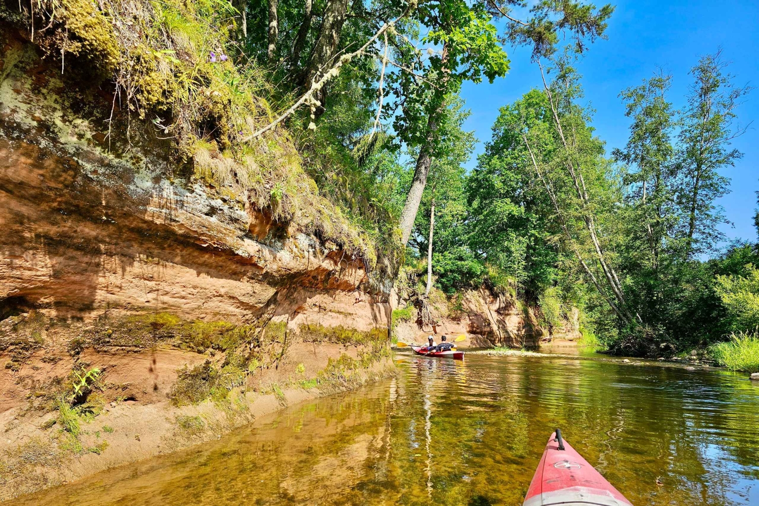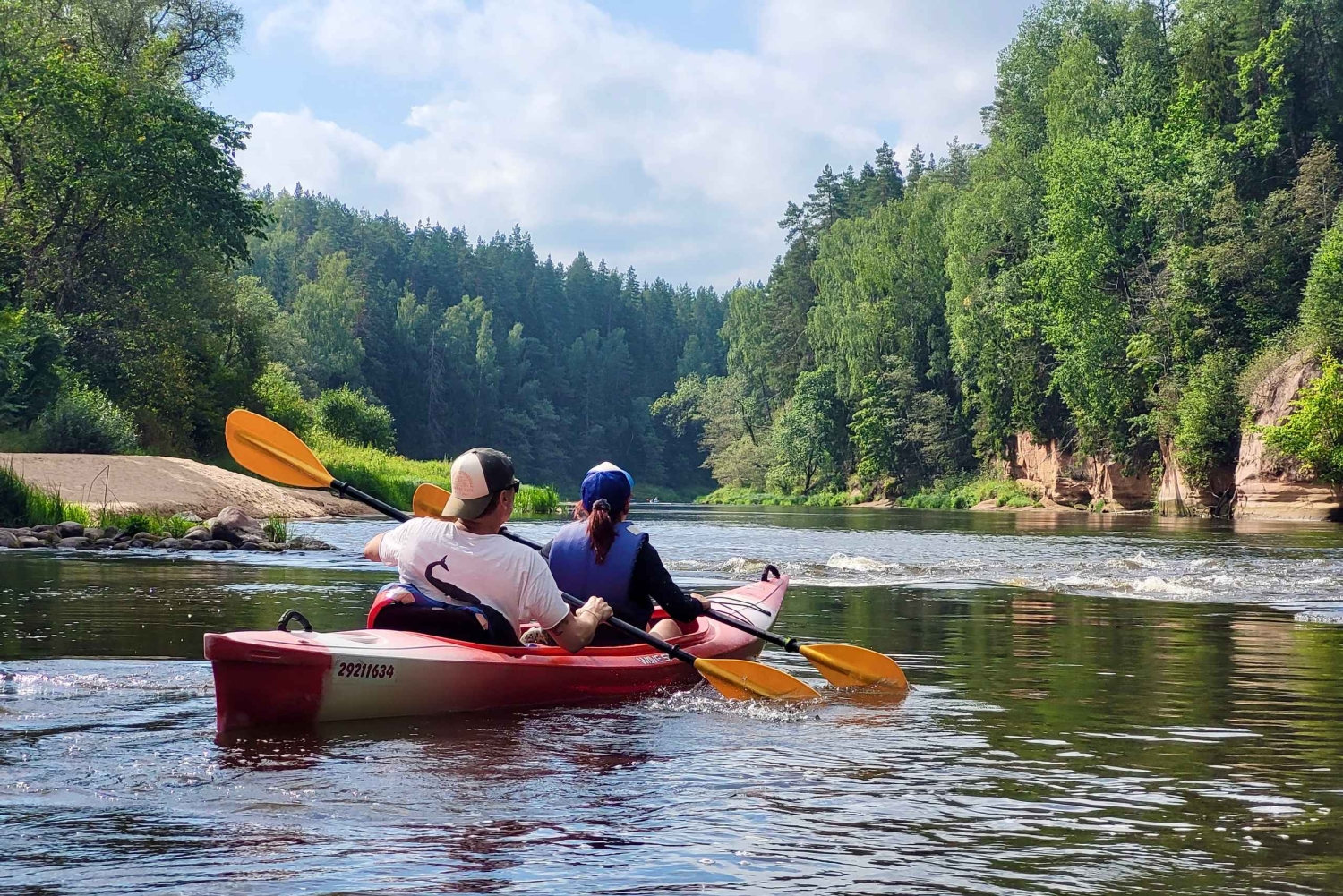 Reúnete con tu guía por la mañana y dirígete al Valle del Río Gauja para comenzar tu excursión en kayak. La naturaleza curvilínea y salvaje del río Gauja y sus afluentes hacen de esta experiencia algo para recordar, y una visita obligada para los viajeros a los que les gusta aventurarse fuera de los caminos trillados. Durante tu excursión en kayak, verás algunos de los paisajes más bellos del valle del río Gauja, como las impresionantes y escarpadas orillas del río, los asombrosos acantilados de arenisca, los densos bosques del Parque Nacional de Gauja y mucho más. Tu anfitrión del tour te hará participar con un enfoque especial de 'viaje improvisado' y te hablará de la naturaleza, la cultura y las tradiciones de Letonia. Rema de 15 a 20 kilómetros río abajo en una aventura realmente divertida. Hay varios puntos alternativos para terminar en el camino, por lo que la duración del viaje se puede ajustar según tus deseos. Tras llegar a tu destino final, disfruta de un traslado de vuelta a tu hotel en Riga, o alójate en la pintoresca ciudad de Sigulda.Includes