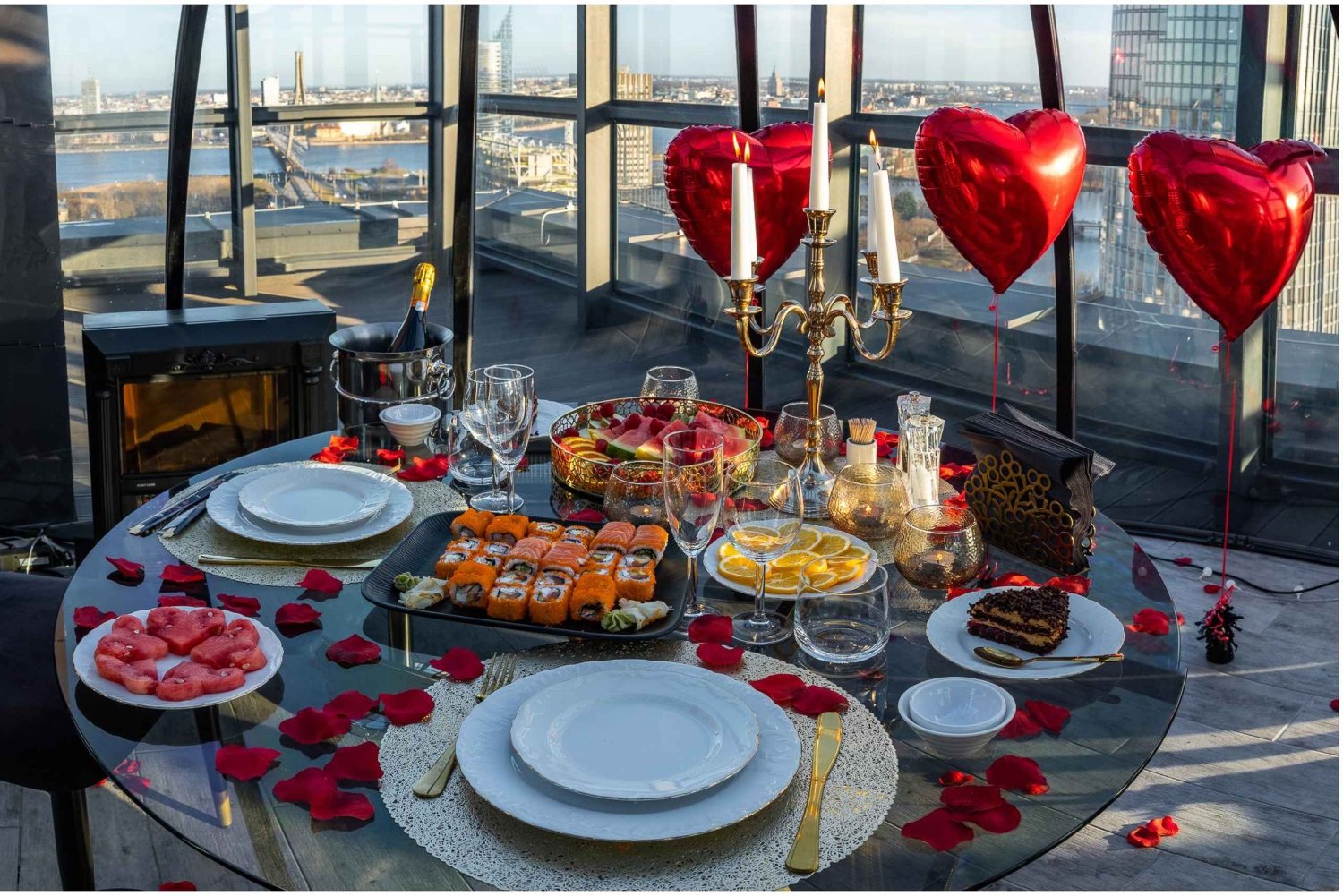 Skyhouse Igloo es un iglú con cúpula que se alquila en la terraza de la planta 23 del nuevo proyecto Filozofu Residence, en Raņka Dambis 34. ¡Impresionantes vistas de Riga y emociones inolvidables! La cúpula tiene calefacción, por lo que Skyhouse Igloo es cálido y confortable en cualquier época del año. Cualquier opción de reserva. Fecha, cumpleaños, cena familiar, reunión de negocios, despedida de soltera y mucho más. Fiesta llave en mano o solo alquiler. Puedes pedir comida y bebida con nosotros o traer la tuya propia. Pedimos comida al restaurante Bento. Nuestros precios son los mismos que los del menú del restaurante.Includes