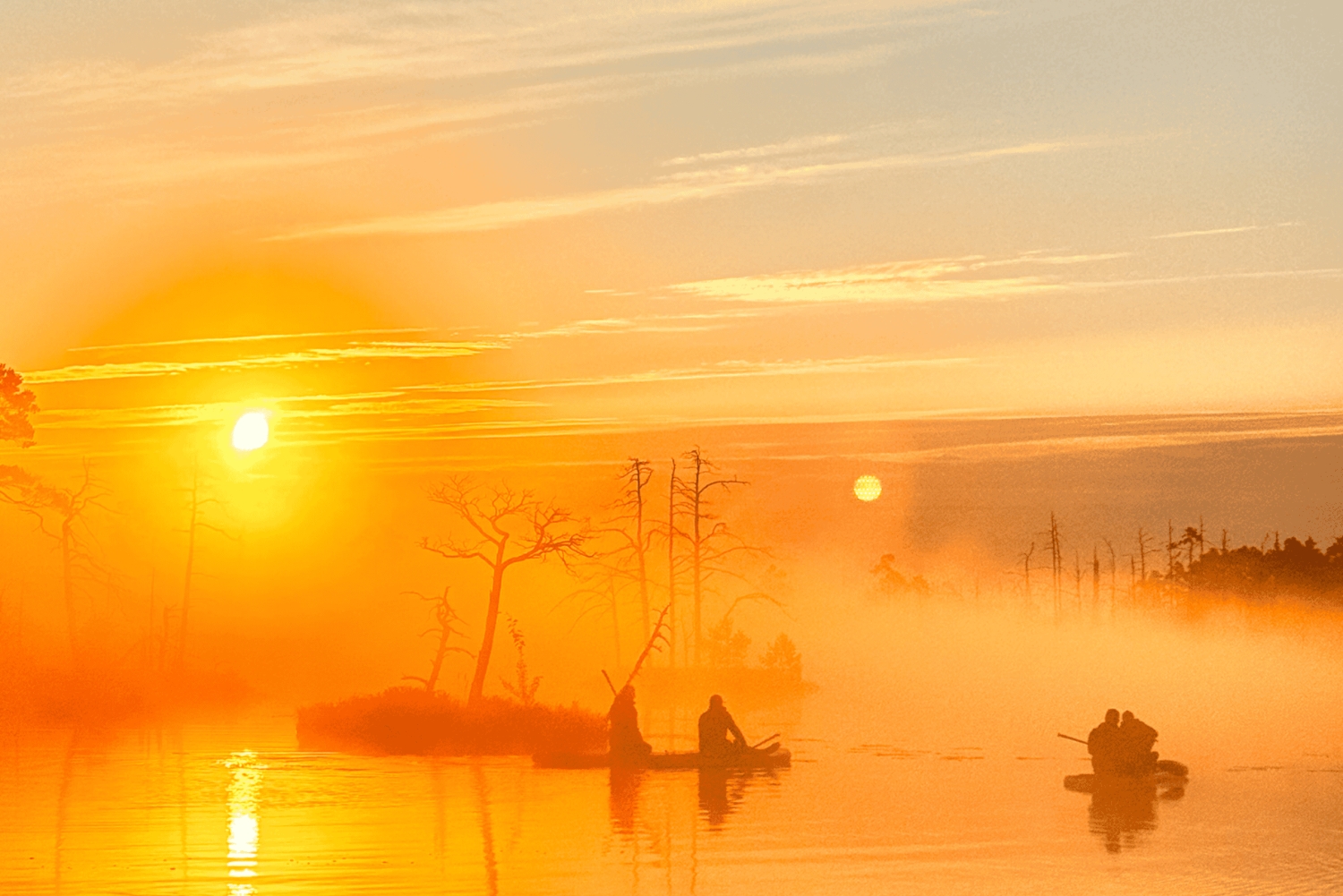 Sunrise paddle board tour / Location: Cenas tīrelis Paddle into the golden hour! Explore the peaceful swamp at sunrise with our paddleboard tour. It's a special way to experience the beauty of nature as the day begins. *The adventure start time may vary depending on the season and month. You will receive detailed information with exact pick-up and start times the day before the activity. IMPORANT! It is not possible to drive to the swamp lake, so each person must carry their paddleboard equipment (in a special backpack) to and from the starting point (2 km each way). Tours are provided by VisitRiga.travel, with several years of experience in organizing active adventures and sightseeing tours by boat in Riga.Includes