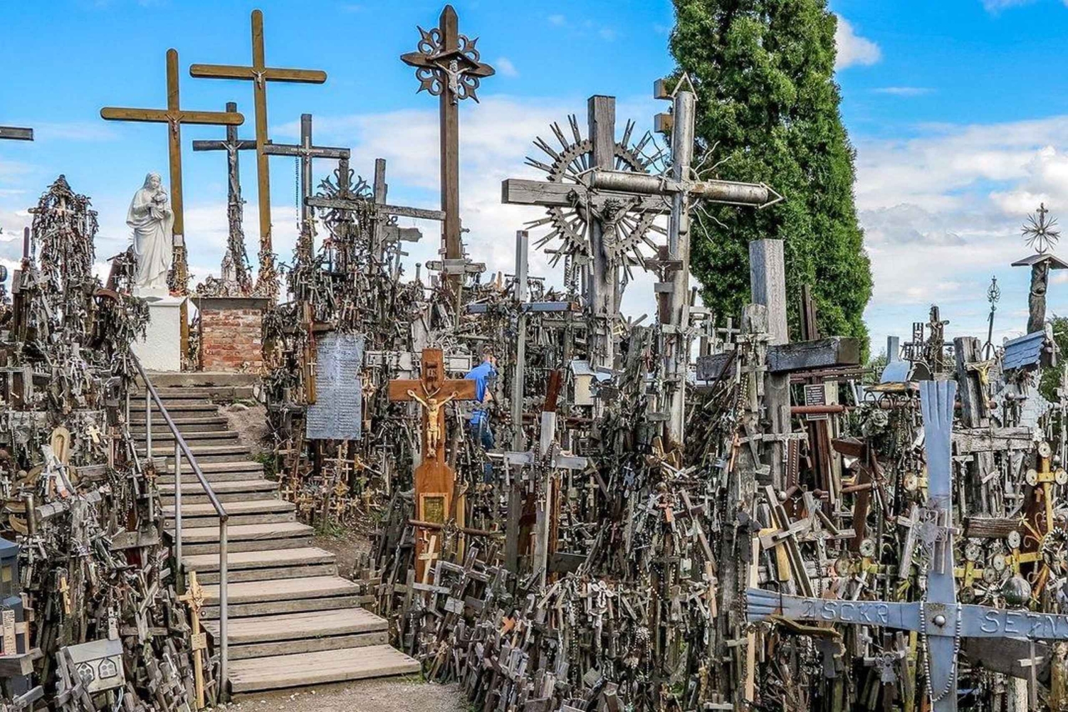 Excursion privée d'une journée complète au départ de Riga, avec des arrêts à Bauska, au palais de Rundāle, à la colline des Croix et au château de Trakai avant d'arriver à Vilnius. Voyagez confortablement avec un chauffeur professionnel anglophone.