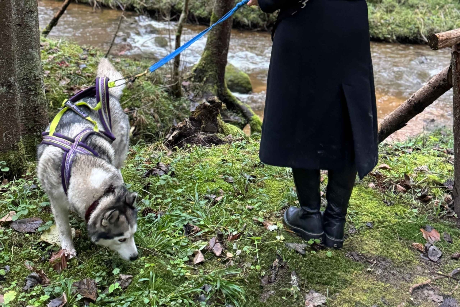 Zelfbegeleide huskywandeling in het bos of natuurpad. Ga op in de natuur en geniet van lieve huskyhonden. Een actieve activiteit die perfect is voor stellen, groepen, vrienden of solo-uitstapjes.