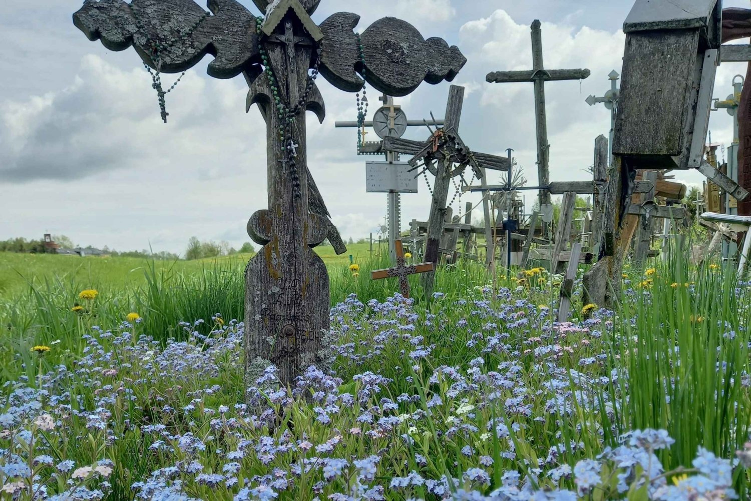 Bezoek een van de populairste bezienswaardigheden in Litouwen tijdens deze dagtrip van Riga in Letland naar de Hill of Crosses. Maak onderweg verschillende stops, waaronder een ruststop en een fotostop bij de grens tussen Letland en Litouwen. Begin met een ophaalservice vanaf het centraal gelegen stadhuisplein in Riga. Ontspan in een comfortabel busje tijdens de schilderachtige transfer naar de Hill of Crosses. Stop bij een rustplaats waar je gebruik kunt maken van het toilet en onderweg snacks kunt kopen. Arriveer op de Kruisheuvel en leer van je gids over dit bedevaartsoord voordat je vrije tijd hebt om het belang van dit gebied op eigen houtje in je op te nemen. Ervaar de diepe sfeer terwijl je tussen duizenden kruizen wandelt, die elk symbool staan voor geloof, hoop en veerkracht. Bewonder de ingewikkelde ontwerpen en persoonlijke boodschappen die de houten, metalen en stenen kruizen sieren. Ontdek de unieke mix van spiritualiteit en geschiedenis op dit krachtige bedevaartsoord, een bewijs van de blijvende geest van het Litouwse volk. Na Hill of Crosses gaat de groep terug naar Riga, Letland met een stop bij de internationale grens van Letland-Litouwen en een doorsteek door Jelgava - Maak een foto om te delen met vrienden op de grens en bewonder het uitzicht op de stad Jelgava, en neem een korte stadsrondleiding in de St. Simeon en St. Ann orthodoxe kathedraal, een opvallend voorbeeld van Byzantijnse architectuur. Deze historische kathedraal, bekend om zijn prachtige blauwe en witte gevel, werd gebouwd in het begin van de 20e eeuw en dient als een belangrijke gebedsplaats voor de orthodoxe gemeenschap in de regio. Het interieur is voorzien van prachtige iconografie en ingewikkeld vakmanschap in hout en geeft inzicht in het spirituele erfgoed van het gebied. Na je bezoek aan zowel de Hill of Crosses als de kathedraal kun je tijdens de terugreis naar Riga verder genieten van het schilderachtige uitzicht. Deze excursie van een halve dag is een gedenkwaardige manier om in contact te komen met het rijke erfgoed van de Baltische staten en de diepgaande invloed van geloof en nationale identiteit in de regio te begrijpen.Includes