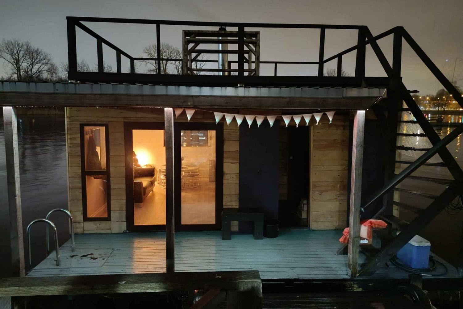 Fly staden och njut av ren avkoppling på en flytande bastu i hjärtat av Riga. Njut av en unik och oförglömlig upplevelse, inbäddad i den lugna Daugava-floden. Njut av en fantastisk panoramautsikt över stadens silhuett medan du varvar ner i värmen från den mysiga bastun. Njut av den friska luften och den fantastiska utsikten i relaxavdelningen utomhus. Svalka av dig efter bastun med ett dopp. Njut av våra extrafunktioner: Laga en festmåltid med vänner och familj på BBQ-grillen, drycker och privat transfer (extra avgift). Skräddarsy din upplevelse efter dina specifika behov och önskemål med en professionell bastuvärd, en mängd olika eteriska oljor, salter och kvastar och personliga paket (extra avgift). Välj mellan 2-timmars, 3-timmars eller övernattningsuthyrning.Includes